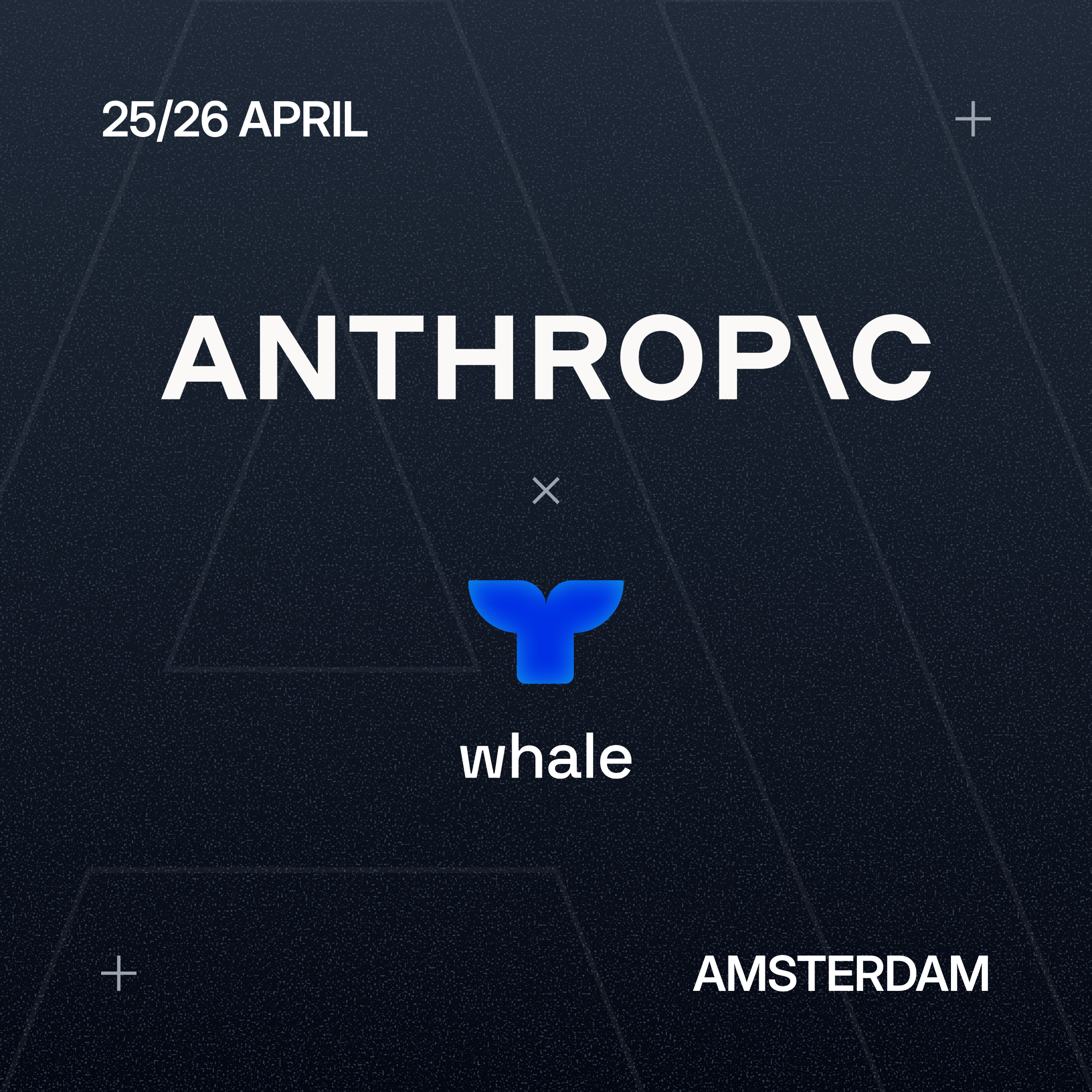 Whale teams up with Anthropic for the Claude Code Hackathon in Amsterdam. Developers race to build Claude-powered AI solutions, collaborating and competing in a fast-paced technical challenge. The event starts at 10:00; venue to be announced; registration details via the linked page.
