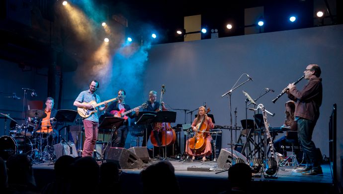 A concert celebrating Terry Riley's 90th birthday with Bang on a Can All-Stars performing two classics at Muziekgebouw aan 't IJ in Amsterdam.