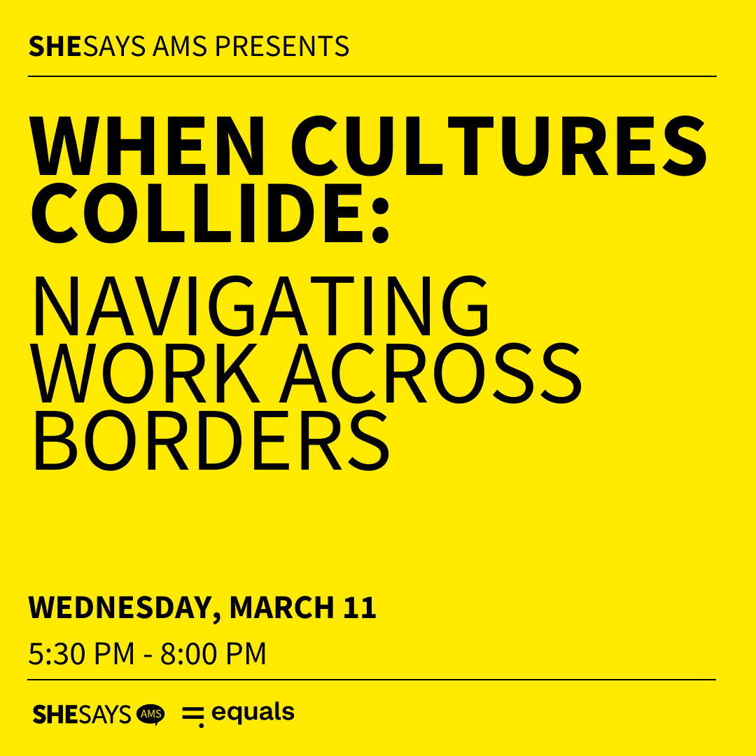 A talk on navigating work across borders and cross-cultural collaboration, hosted by SheSays AMS in Amsterdam.
