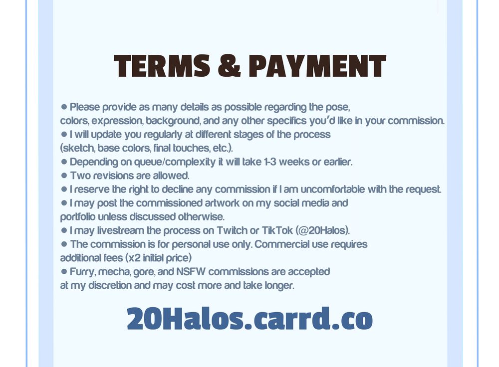 My commissions are open! 20halos.carrd.co