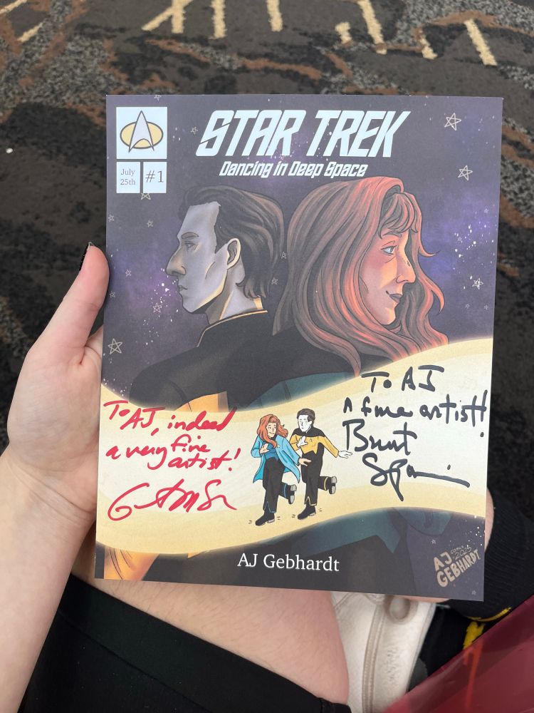 Met Brent Spiner and Gates McFadden on Thursday and had them sign my art! Honestly a dream come true!