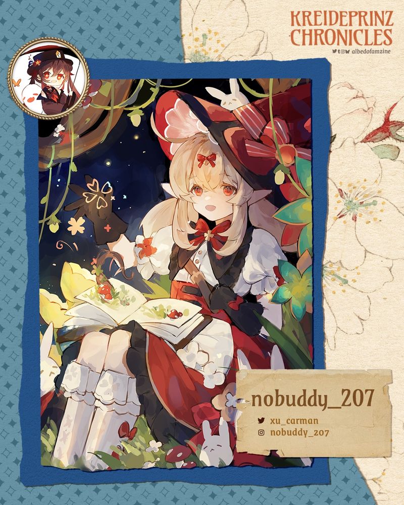 Kreideprinz Chronicles is a SFW, for-profit, physical zine dedicated to Albedo and the characters said to be a part of his family: Rhinedottir, Alice, Klee, Subject Two, Subject Three, Durin, Melusines, etc.