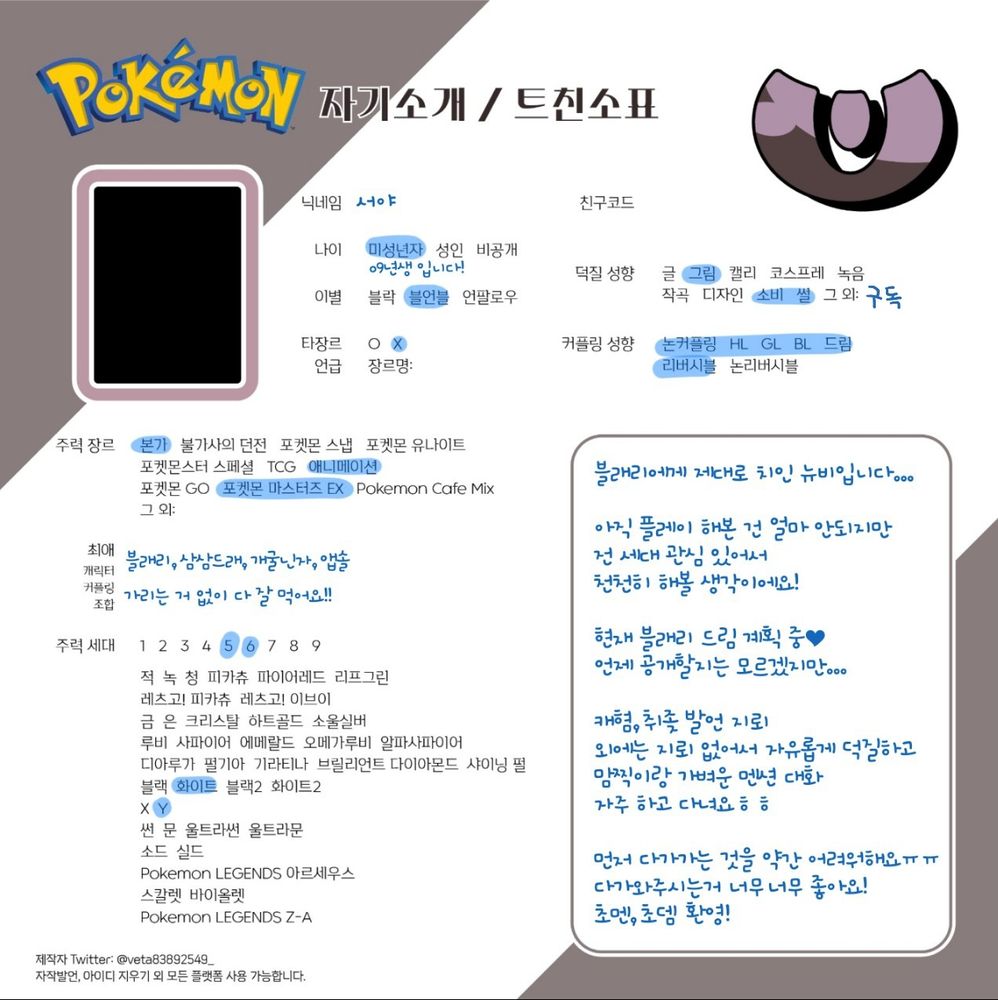 여성 / 당분간 활동 뜸함💤 / 포켓몬 일상 위주 그 외 기타 등등 / 트친 보이면 무작정 팔로 중