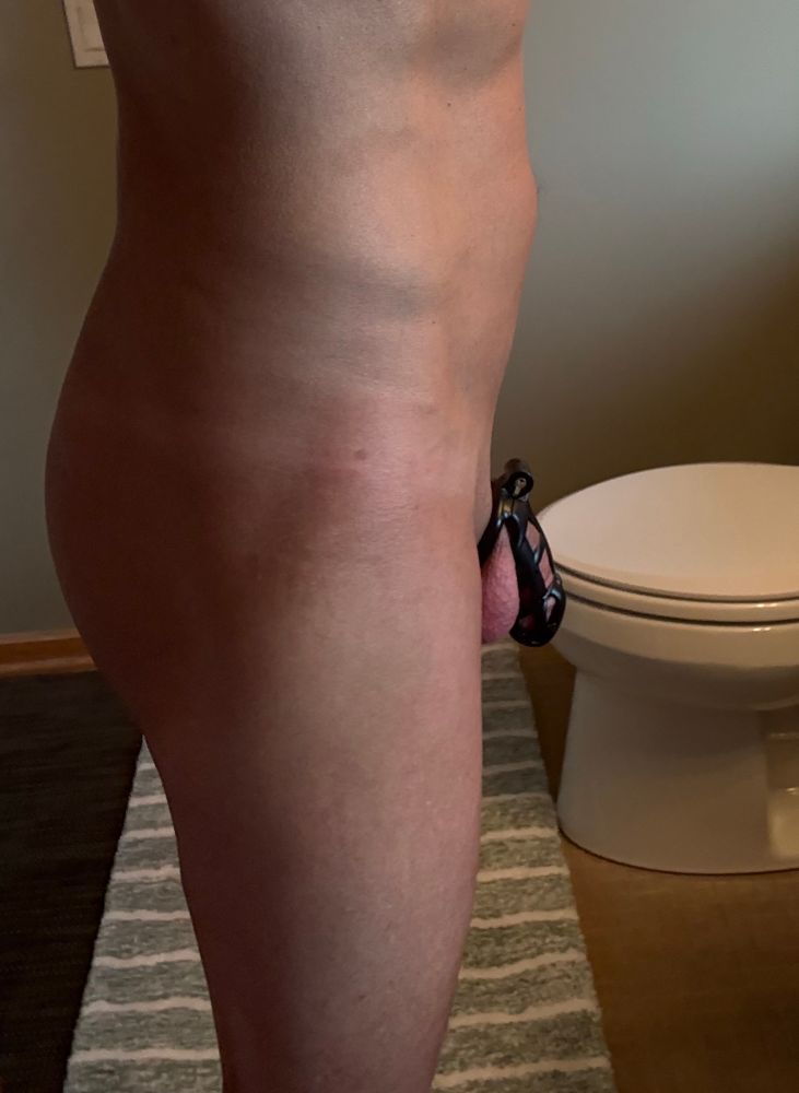 New curved base with rings for my cage with straps to hold it in place from Mr S Leather. Day 7 of being locked and more feral everyday. 😈😜