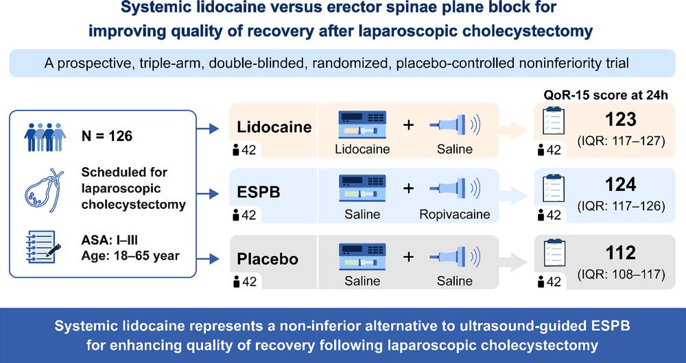 In this new randomized trial of 126 patients having laparoscopic cholecystectomy, intravenous lidocaine provided a non-inferior quality of recovery compared to erector spinae plane block. Either approach was superior to placebo.