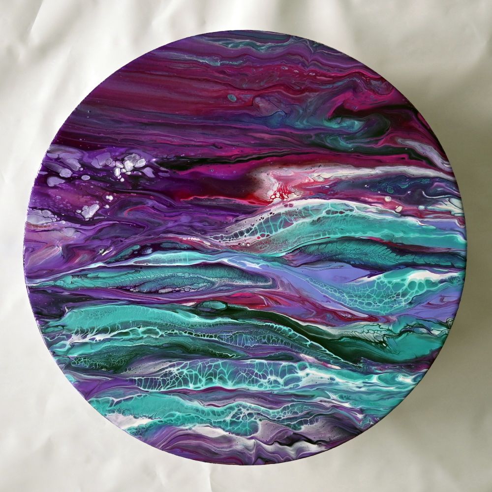 I like to experiment with different fluid art techniques and materials and follow the natural paint flow with all its unpredictability.