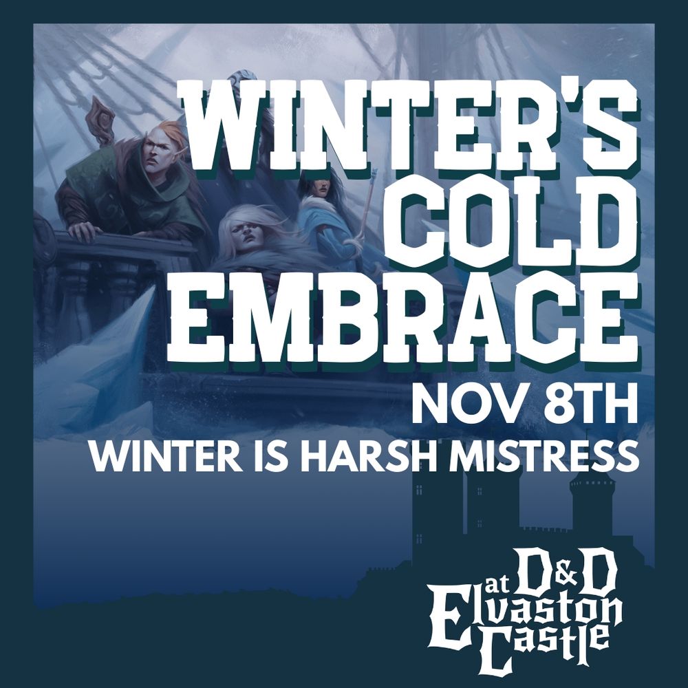 I am delighted to announce that I will be hosting Winter is a Harsh Mistress; a game of D&D in Elvaston Castle on Saturday 8th November.