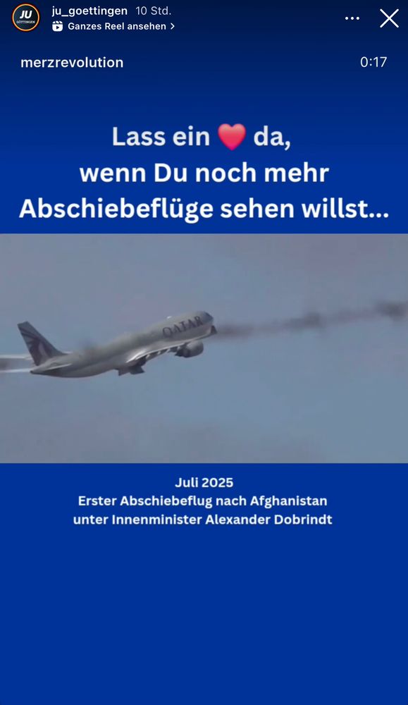 Nach Abschiebung ein Frau durch den Landkreis verbreitet die JU auf Insta ein Reel der „Merzrevolution“ - unterlegt mit Sinatras „The World We Knew (Over and Over)“.