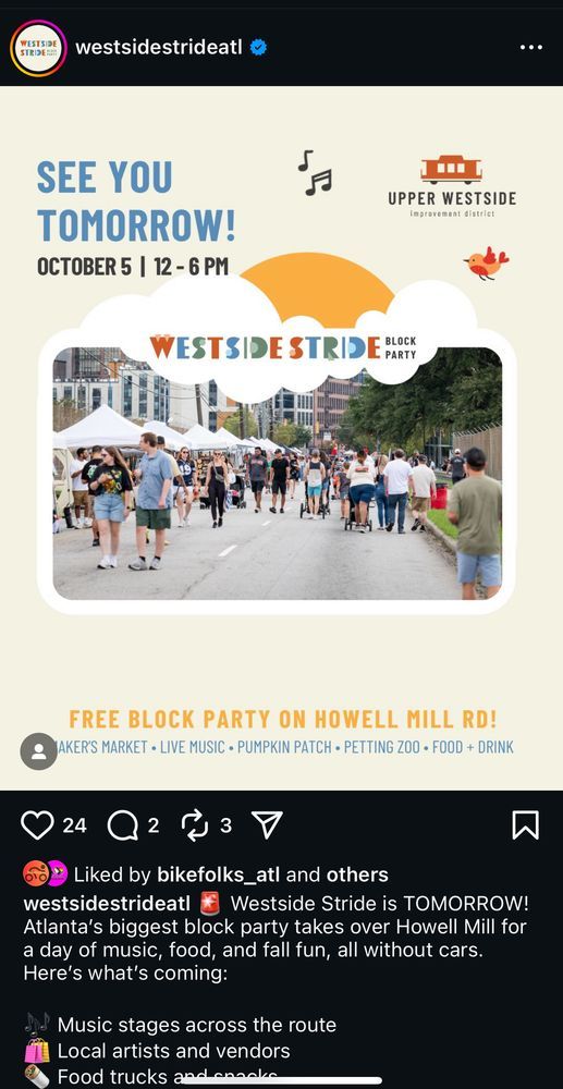 🛑 Leaving promptly by bike at 5:25 for the short ride to meet @letspropelatl at Tye & Memorial at 5:30