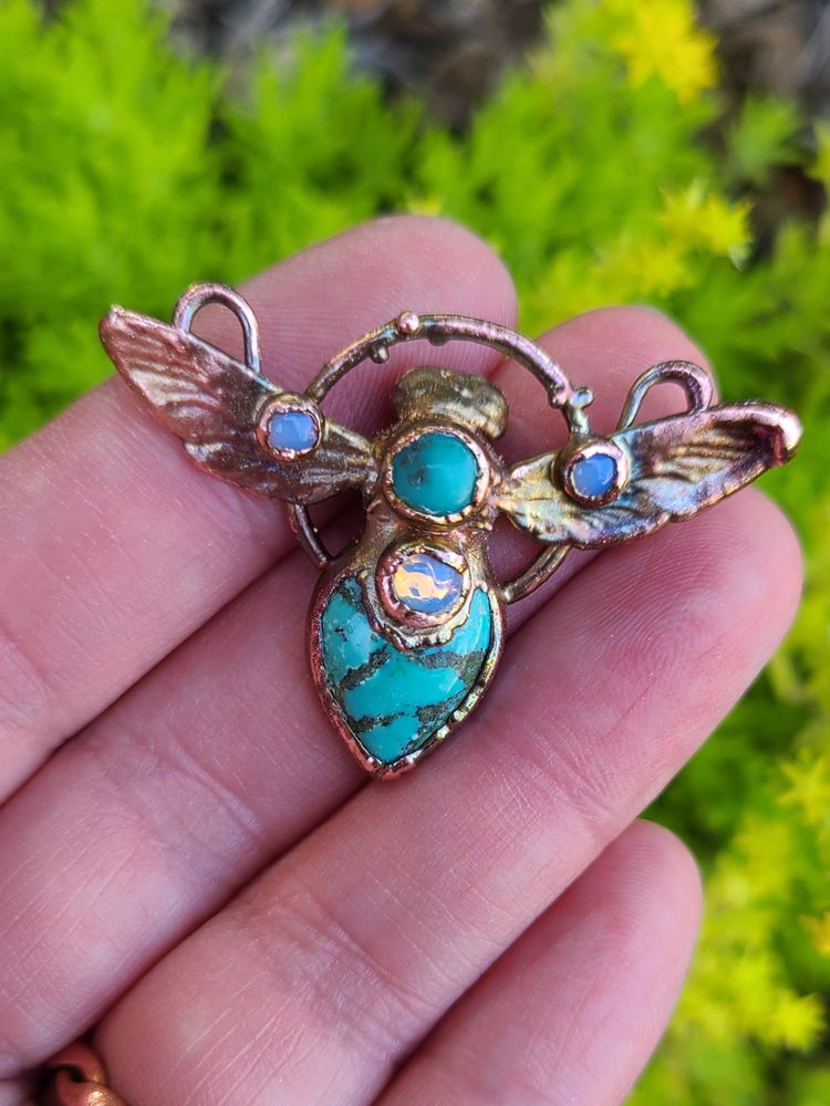 #turquoise #bees #beenecklace #insectjewelry #insectart #sciart #inspiredbynature #goblincore #handmadejewelry #bugart
