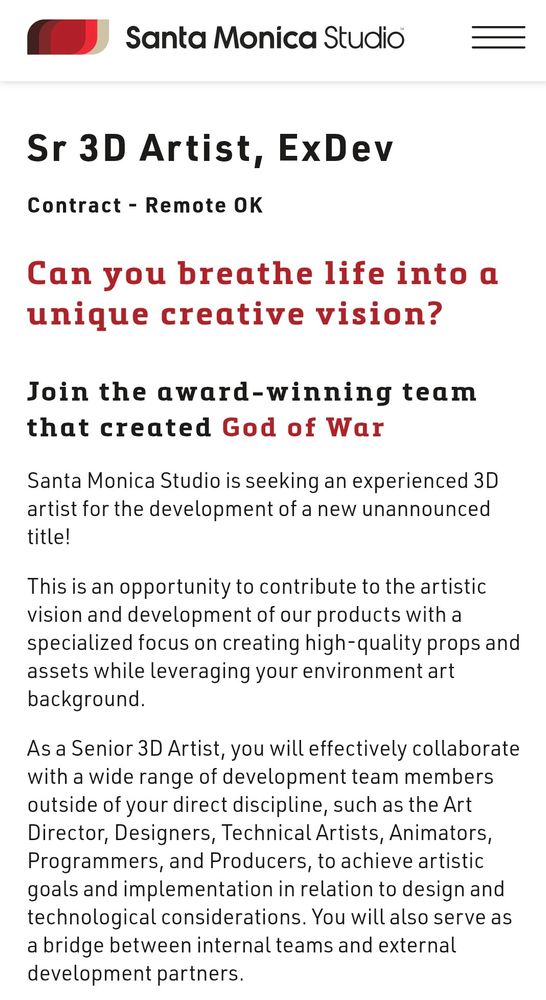 Narrative Realization Director - Santa Monica Studio