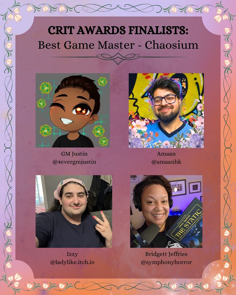 Chaosium creators have received nine nominations across six categories. Please show your support by voting: vote.ennie-awards.com/vote/2025/