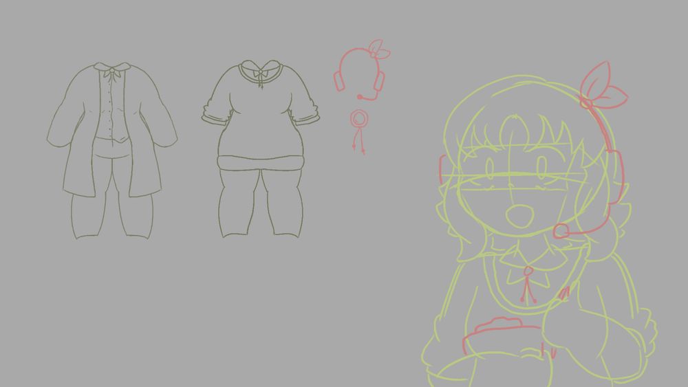 wips i've been doing! one sad teto, two wives (@kadmiumkiri.bsky.social @numya.bsky.social), and some stage manager gumi outfits! wish me luck on finishing any of them...
