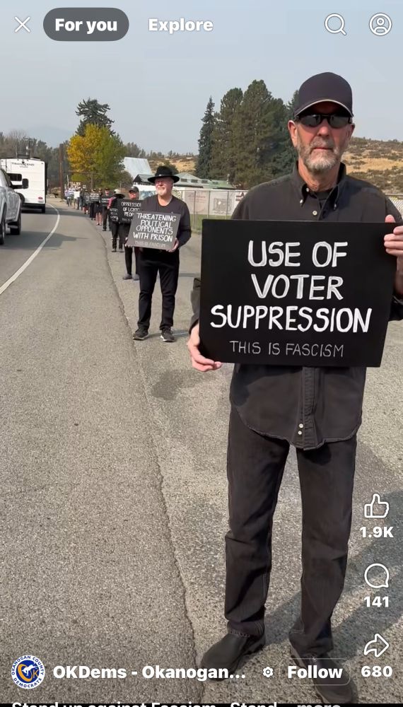 Oklahoma had some great sign ideas. In this instance they dressed in black and held black posters with easy to read white lettering listing the signs of fascism. Very effective.