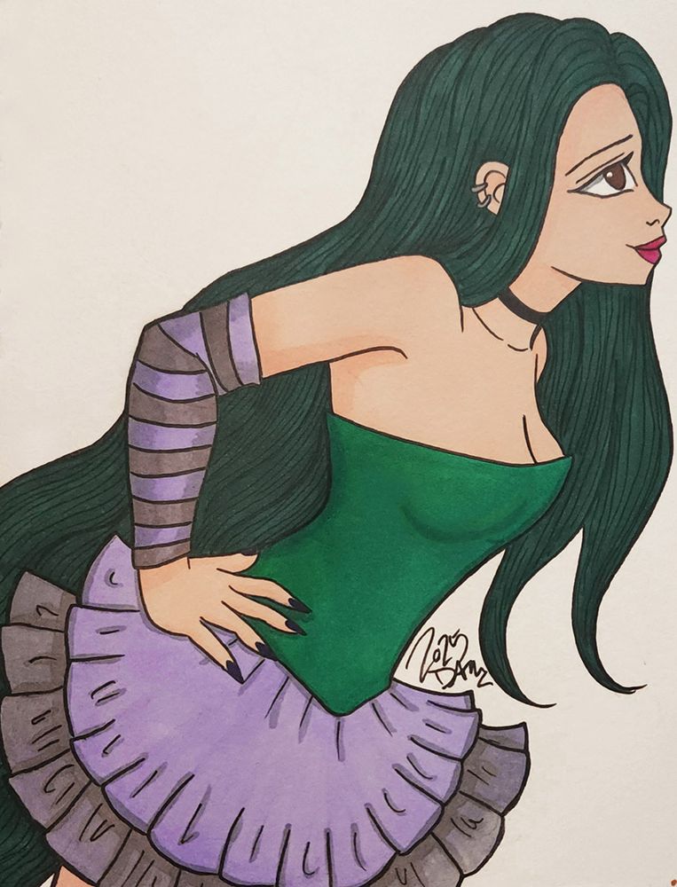 Character: Ione 💚🎀 Owner: Me Pose Ref: Pinterest & 速写超人寸寸 Costume Ref: All the pastel & Gyaru references I could find on Pinterest. (see reply for links) #traditionalart#fantasyart#inktober#intober2025
