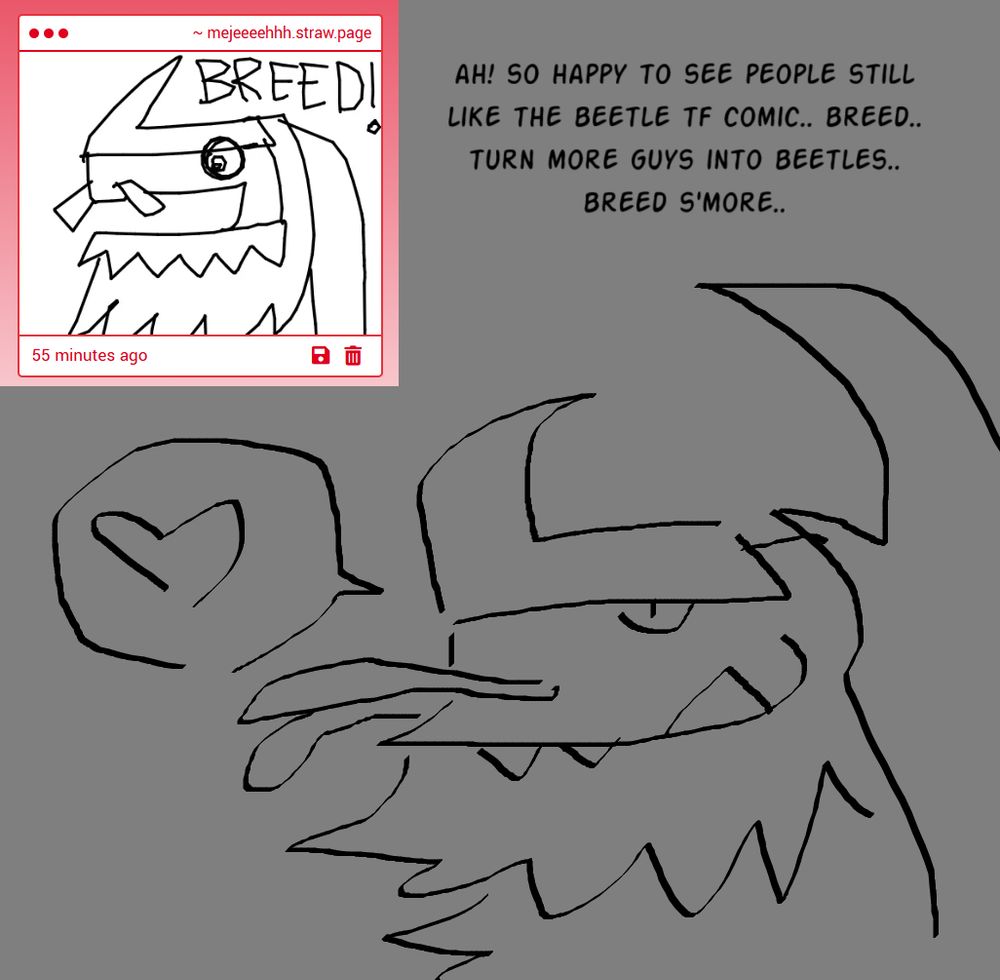 NSFW 18+ | Warning for transformation, oviposition, and fetish art | I draw freaky comics and gay anthropomorphic creatures | Name is pronounced "meh-heh" | 20