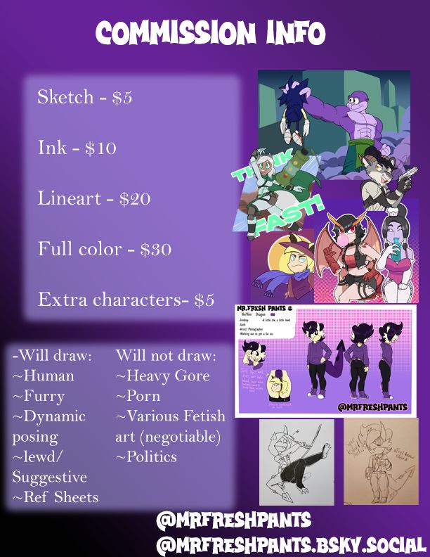 I draw whatever I want, commissions are always open too!
