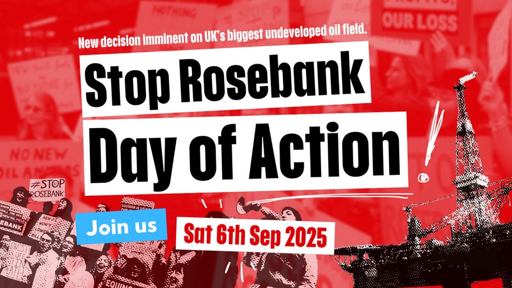 On 6th September, join us for a national Day of Action to Stop Rosebank. This is the moment we’ve been building towards. Any day now, the UK government will face a major climate test. Equinor is expe...