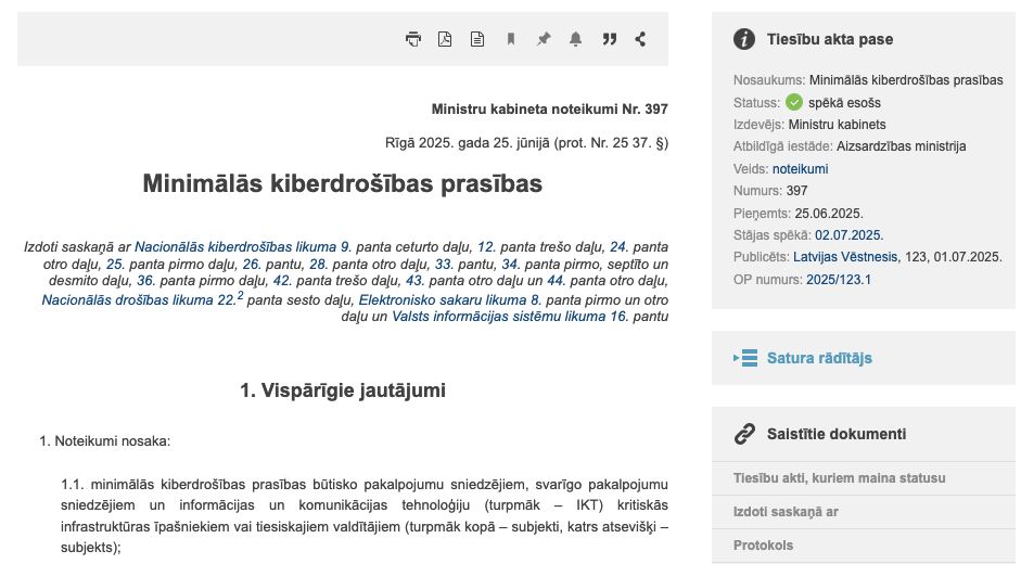 Lasu minimālās kiberdrošības prasības MK noteikumos un priecājos, ka neredzu sen novecojušu marasmu ar obligātām paroļu maiņām, simbolu ierobežojumiem. Spēkā no pagājušās nedēļas 2. jūlija.