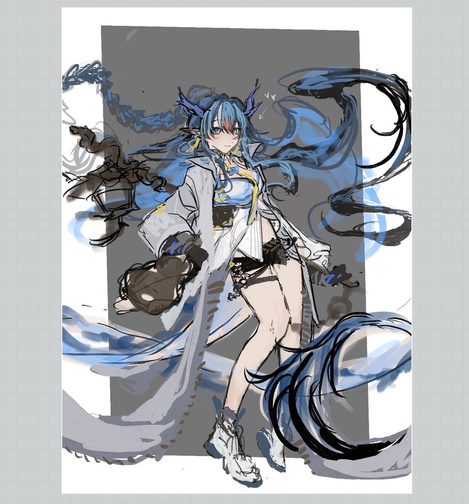 Finally able to draw 🙏 sorry for no updates, really busy lately + kind of burnout a bit。Here’s my rough sketch🩵⭐️