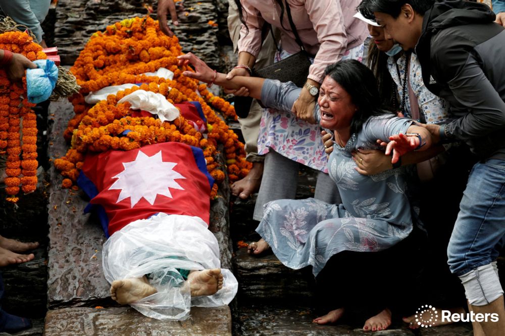 Mother of Rashik Khatiwada, 23, who died in last week's anti-corruption protests that toppled the government, mourns during the cremation rituals along the bank of Bagmati river, in Kathmandu, Nepal. More photos of the week: reut.rs/42xICss 📷 Navesh Chitrakar