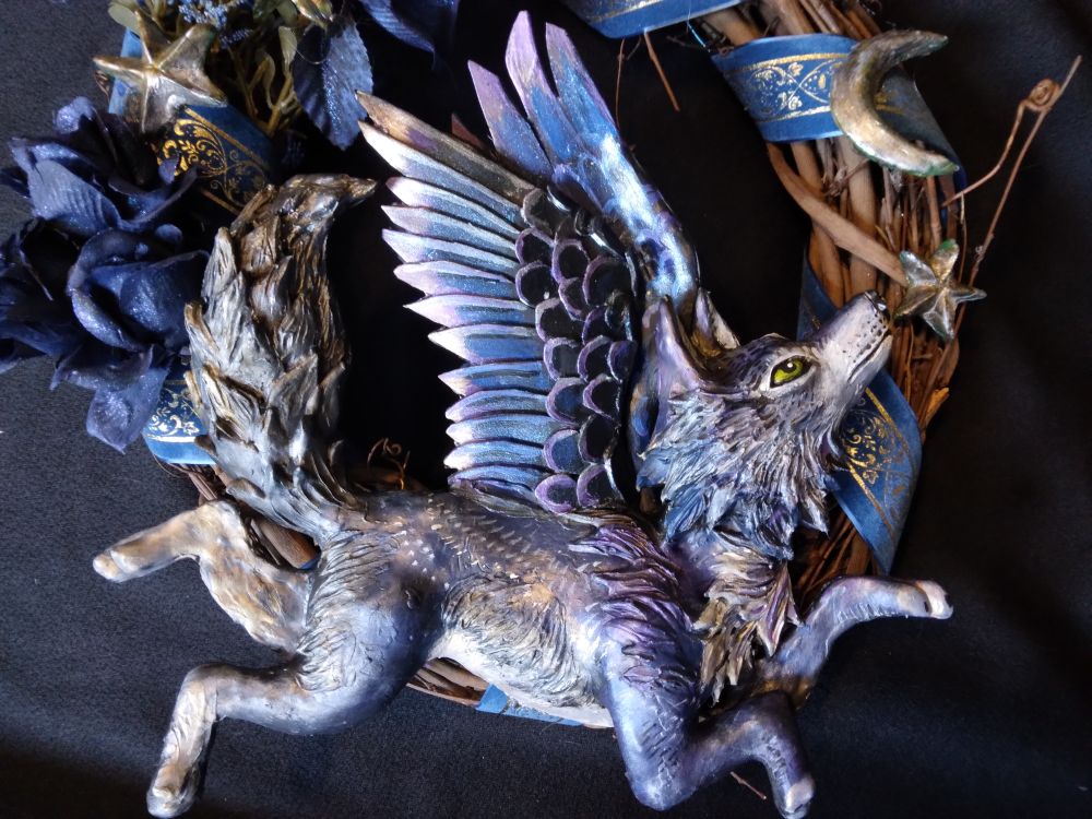 Winged wolf wreath <3 I made a number of wreaths last year for a local yuletide market and really enjoyed how they turned out. what didn't sell went on to the consignment shop and sold there, so I thought I would make some more this year :D