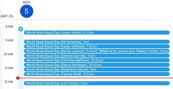 WORLD READ ALOUD DAY! #WRAD is always the best day of the year. Was able to take off a half-day from the day job and fit in 10 different classroom visits in 4 hours. Hot tea and plenty of energy is a must for all these amazing classes. #KidLitSky #EduSky thanks to @katemessner.com for all you do!