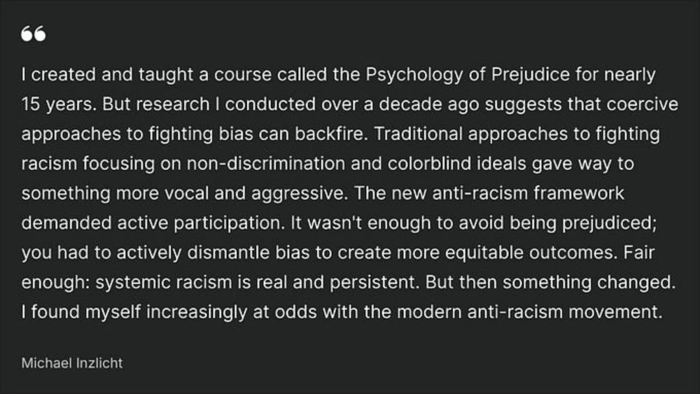 I’ve been reflecting on some backfire moments in EDI and anti-bias discussions. I truly appreciate Dr. Inzlicht’s insightful and professional articulation of these dynamics.