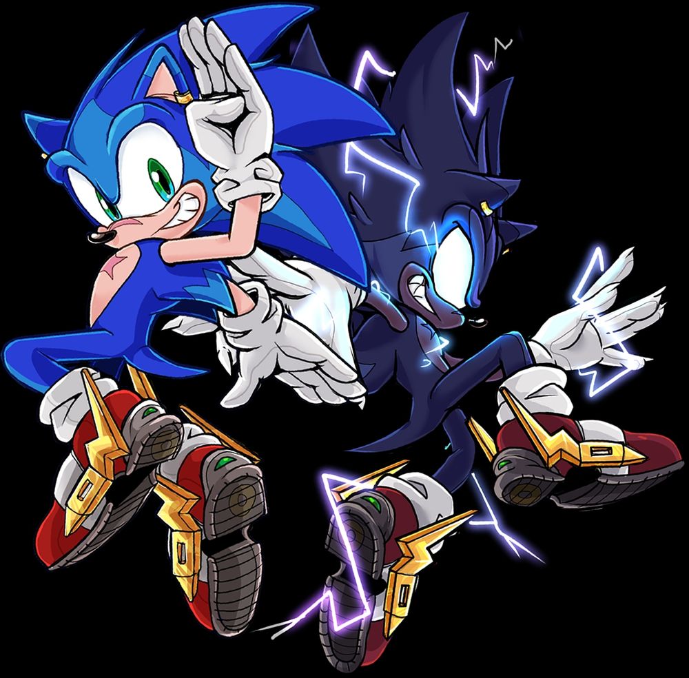 Sonic and Shadow in their poses from the cover of Sonic Adventure 2 Sonic and Shadow in their poses from the intro of Sonic Adventure 2: Battle