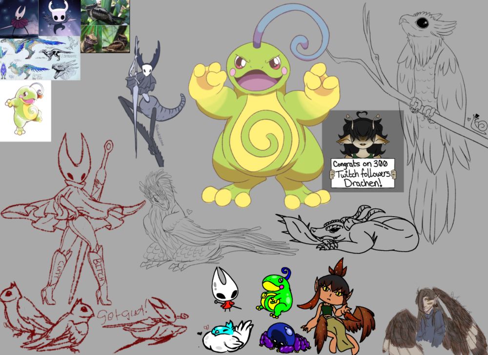 This all started cause I doodled hornet during @drachendesigns.bsky.social 300 twitch follower goal art stream 🥺❤️