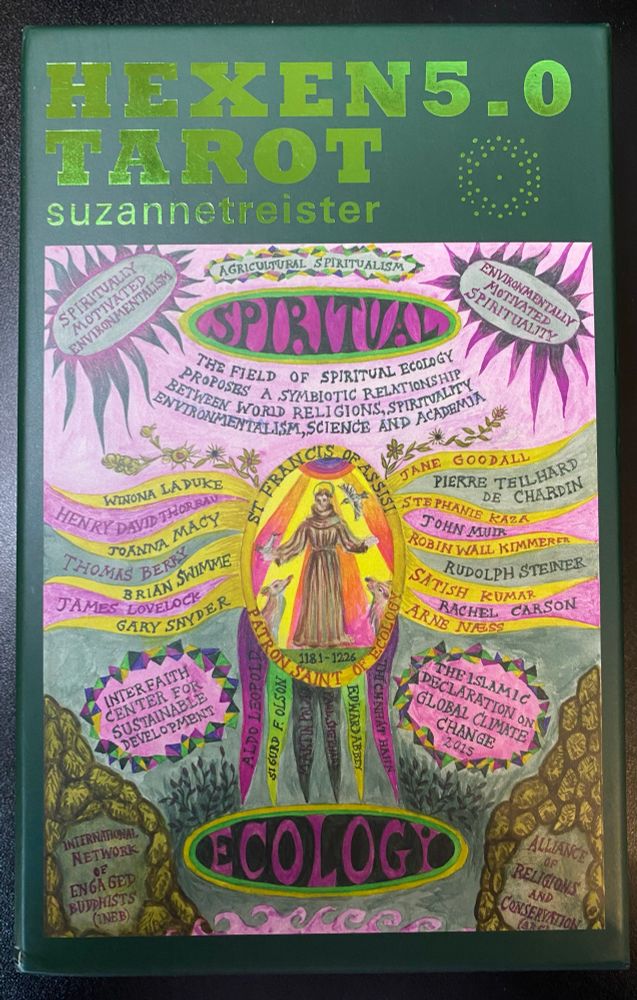 This arrived today- Hexen 5.0 Tarot by Suzanne Treister. I saw some of the original paintings at the Warburg Institute earlier this year and I’m please to pick up this ‘upgrade’ from her 2011 Hexen2.0 cult deck. Lovely artwork and provocative messaging. Jacob Boehme influence on the design.