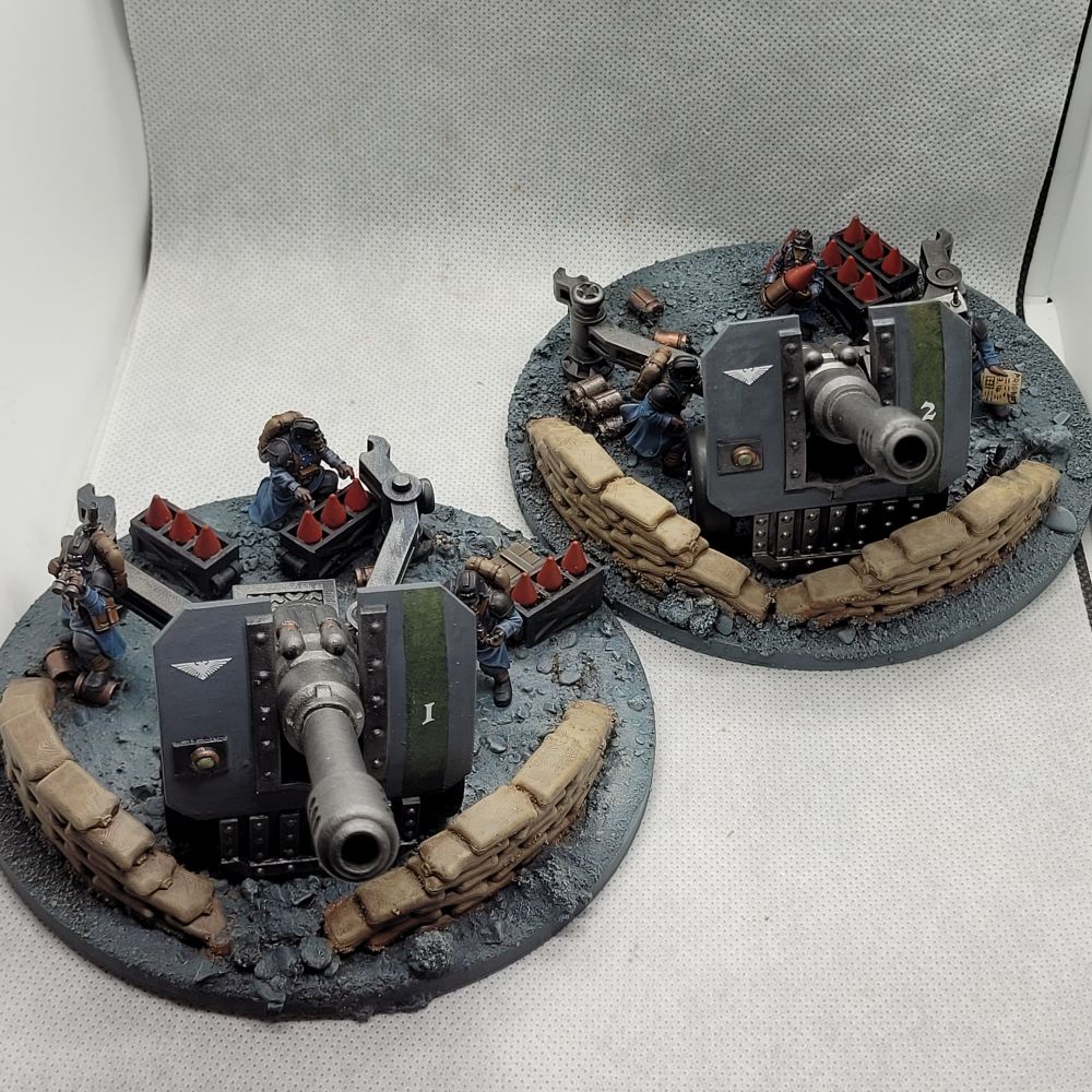 Death Korps of Krieg Artillery proxies with kitbashed crew.