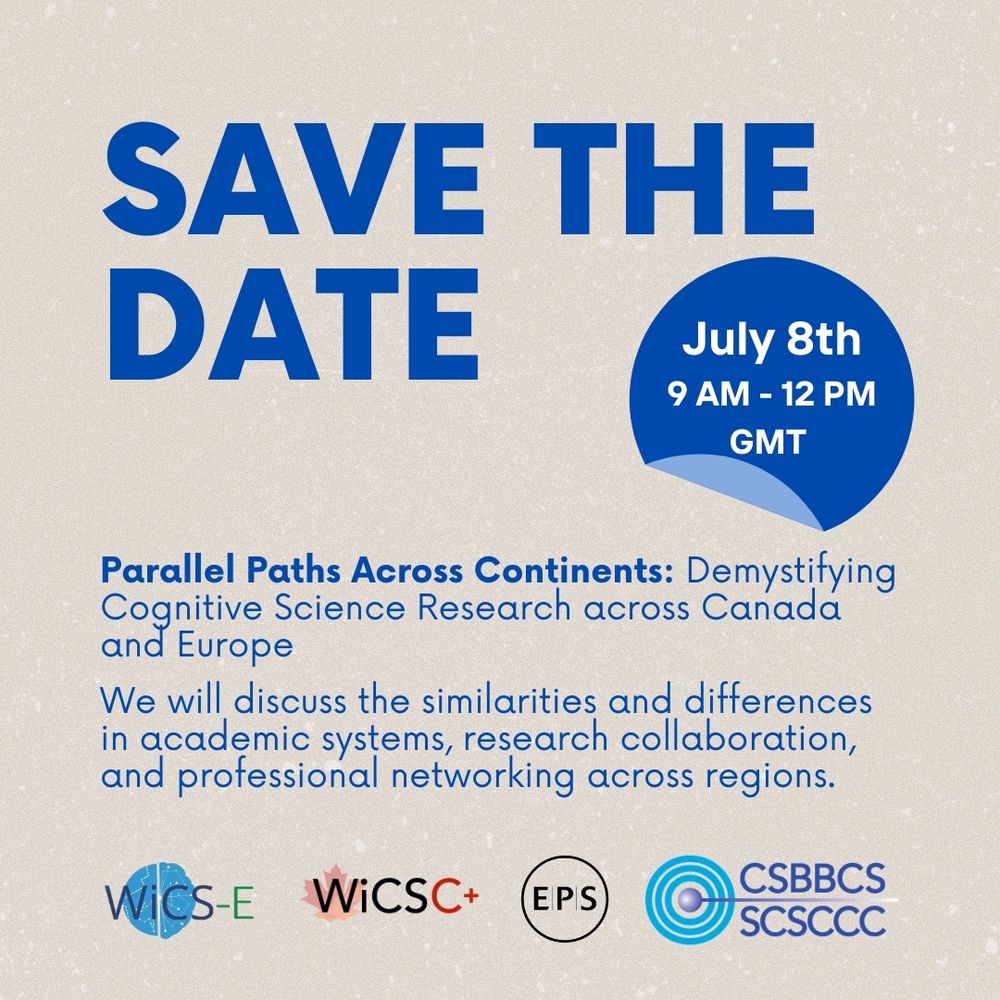 Women in Cognitive Science/Les Chercheuses en Science Cognitives - Canada. We are funded by CSBBCS, and provide professional and networking opportunities for the cognitive science community. https://wicsc.ca. Our Trainee Board is @wicsc-trainee.bsky.social