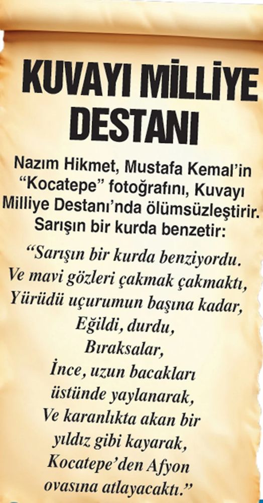 "Az zamanda çok ve büyük işler yaptık. Bu işlerin en büyüğü, temeli, Türk kahramanlığı ve yüksek Türk kültürü olan Türkiye Cumhuriyeti'dir." Yaşasın Cumhuriyet