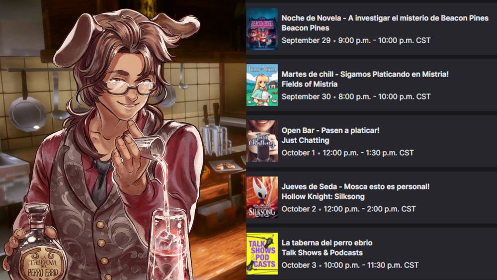 38|| 🇲🇽 || He/Him|| Virtual Bartender Dog, Support Roleplayer, Amateur gamer, Professional idiot, Story devourer. My streams are in Spanish, but I would love to practice my English here ~