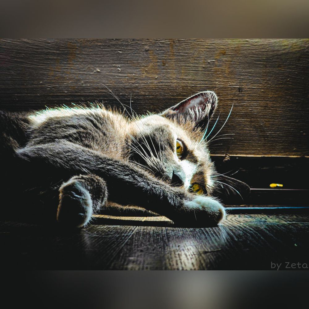 Awww his cute little fang is showing. I want a cat with extra long fangs but this bundle of chaos is what I have.(I still love him though) also, your furniture matches and goes really well with the gray.