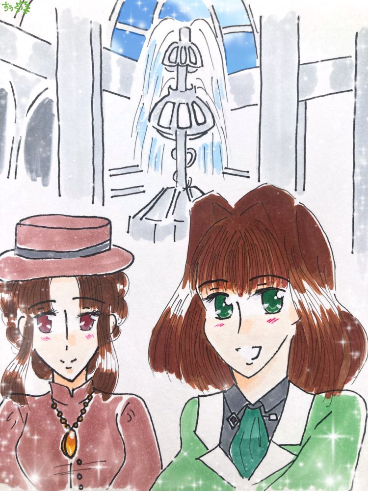昔描いた「不思議と悠久の万華鏡」のアマネとクレハの漫画のワンシーンを描き直してみようかな、と思って描いたのが2枚目!
