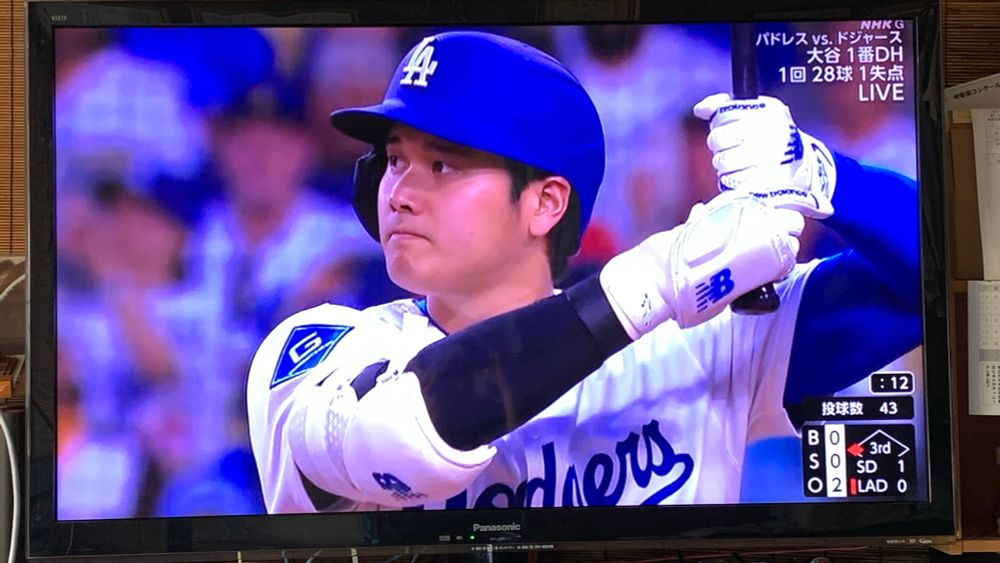 One of the perks being in Japan is you can watch Ohtani’s live game on a public TV.