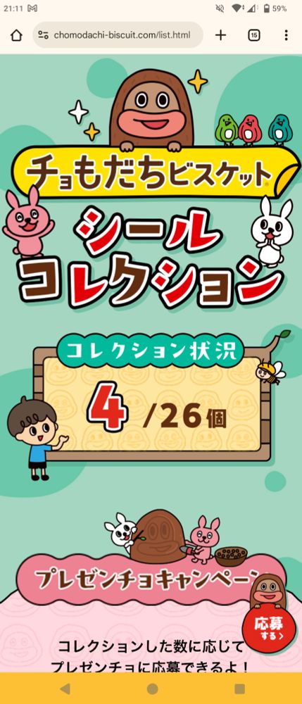 チョコ次郎のシールね、サイトで読み込んでコレクションしていくんだけど、今4つ集まったよー!
