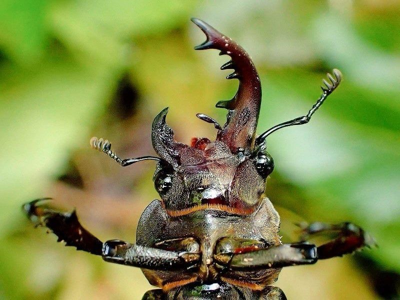 Bilateral gynandromorph stag beetle; left side is male and right side is female.