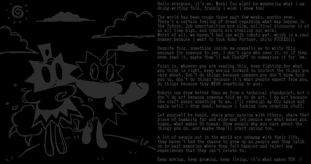 Drawing pictures on the computer, i hope you enjoy them! I am nonbinary.