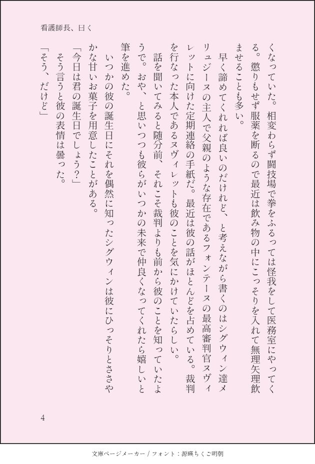 今年の1月に頒布した「彼ら、曰く」からWeb再録しました。