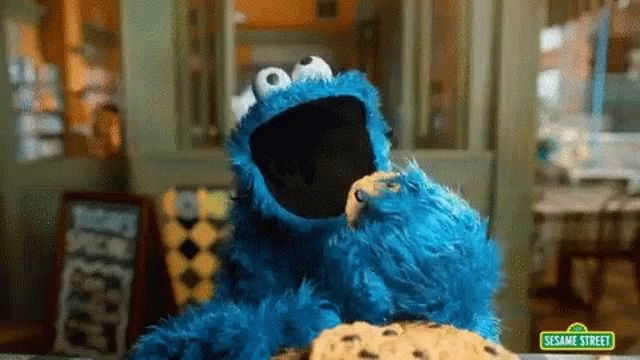ALT: a cookie monster from sesame street eating a cookie