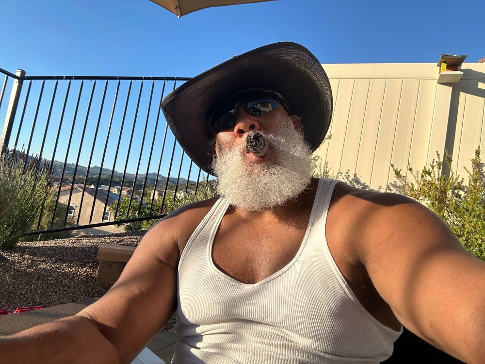 Cowboy Muscle Dad smoke after a pump
