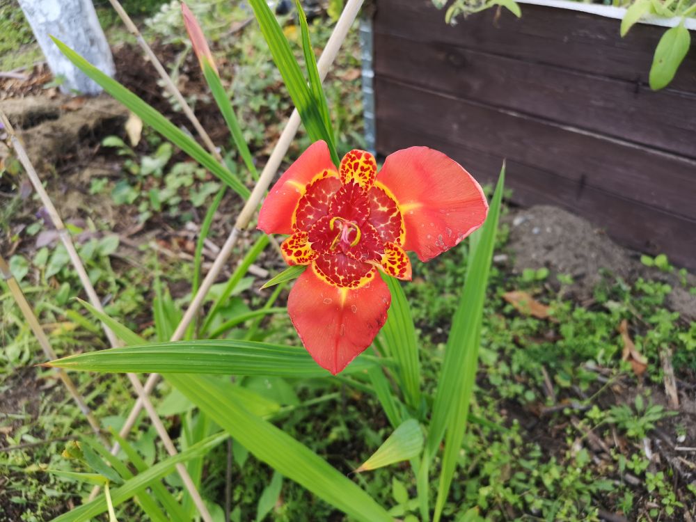 Eine Tigridia pavonia in meinem Garten.