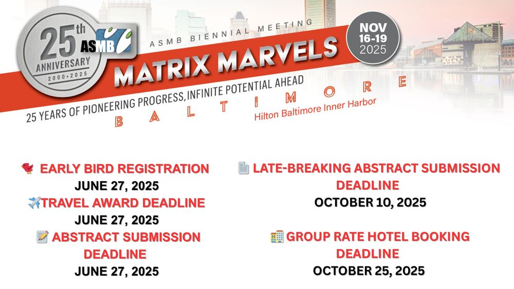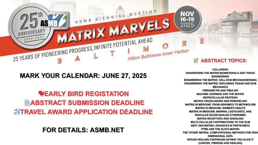 The American Society of Matrix Biology (ASMB) promotes basic, translational, and clinical research on the extracellular matrix and supports the growth of the ECM research community #ECMatrix