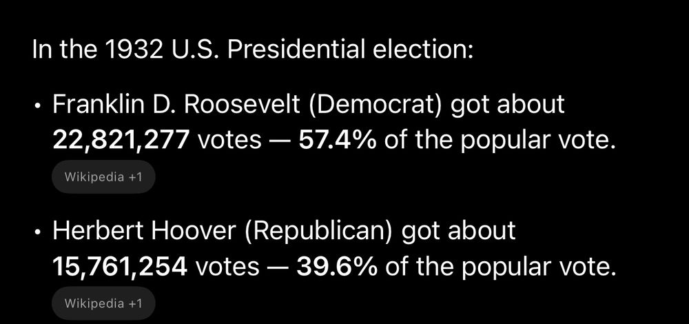 It’s been since 1932 that a candidate has flipped zero counties. Roosevelt won 57.4% to 39.6% in a blowout.