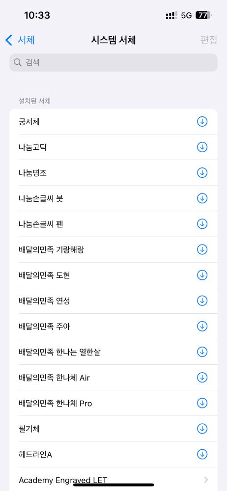 아이폰 설정 > 일반 > 서체 > 시스템 서체에 뭔가 많이 추가는 되었는데 이거 사용할 수 있는 방법을 아직 못 찾음