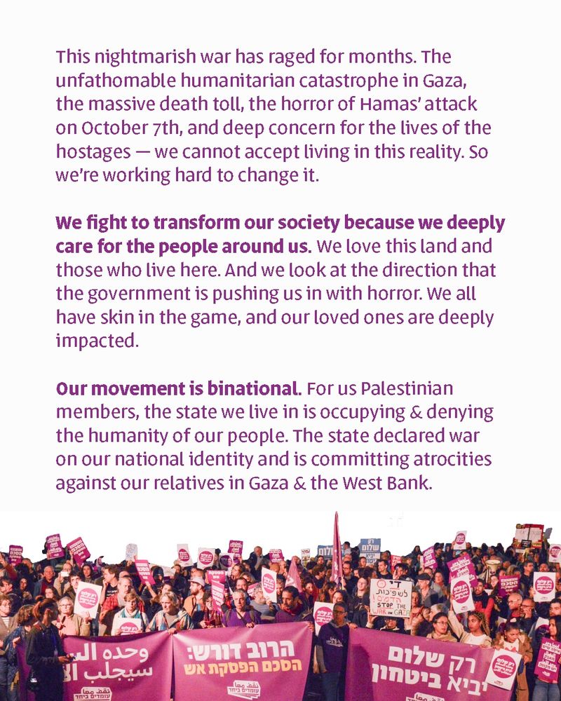 We’re the largest Jewish-Arab grassroots movement in Israel fighting against the occupation and for peace, equality, and justice in Israel-Palestine.