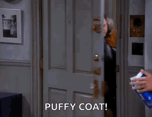 Alt: a man in a puffy coat is opening a door and entering a room